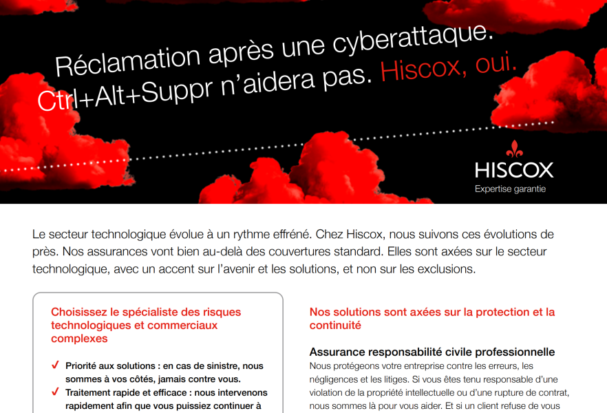 Hiscox en tant qu'assureur technologique ; la fiche d'information